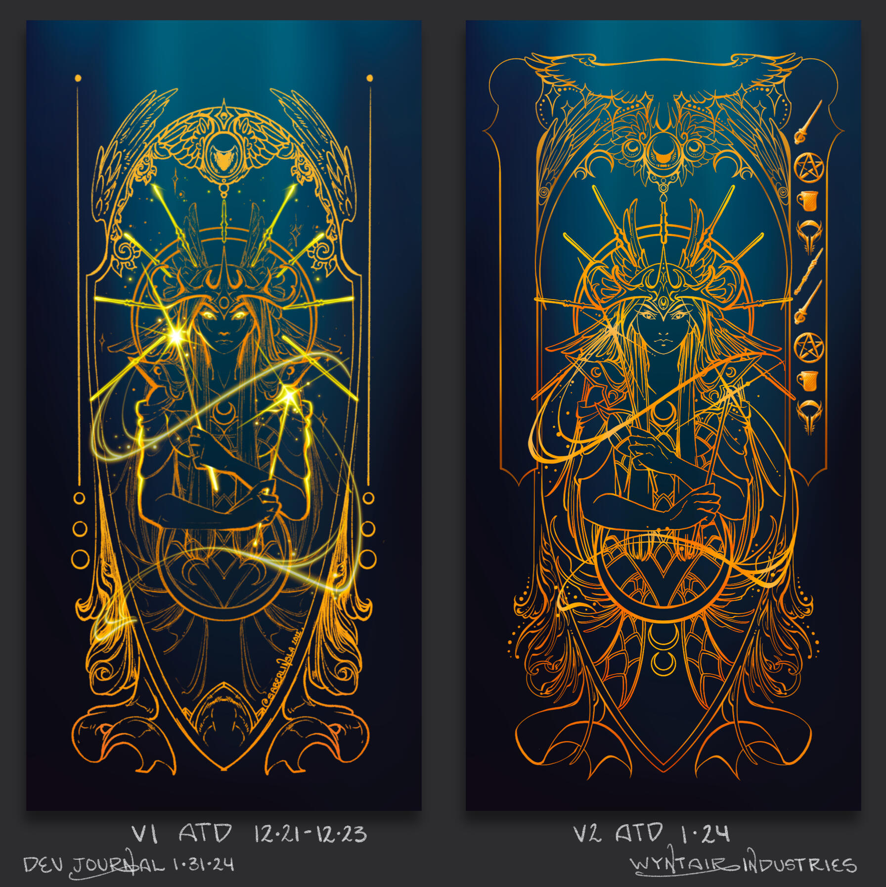 January has been an exciting month of advancement for the Arcana Tarot Deck!Finalizing card layout, and working on some overall and much needed art upgrades.We've also had some early access Patrons take advantage of four of the 20 remaining to be drawn cards, having their original characters and favorite deity added to the deck!16 cards are still available for early access Patrons who'd like to be "immortalized" in their support for this project.There's a lot planned for the printed version of this deck, I'm looking forward to releasing more information as quotes start to come back in the near future!